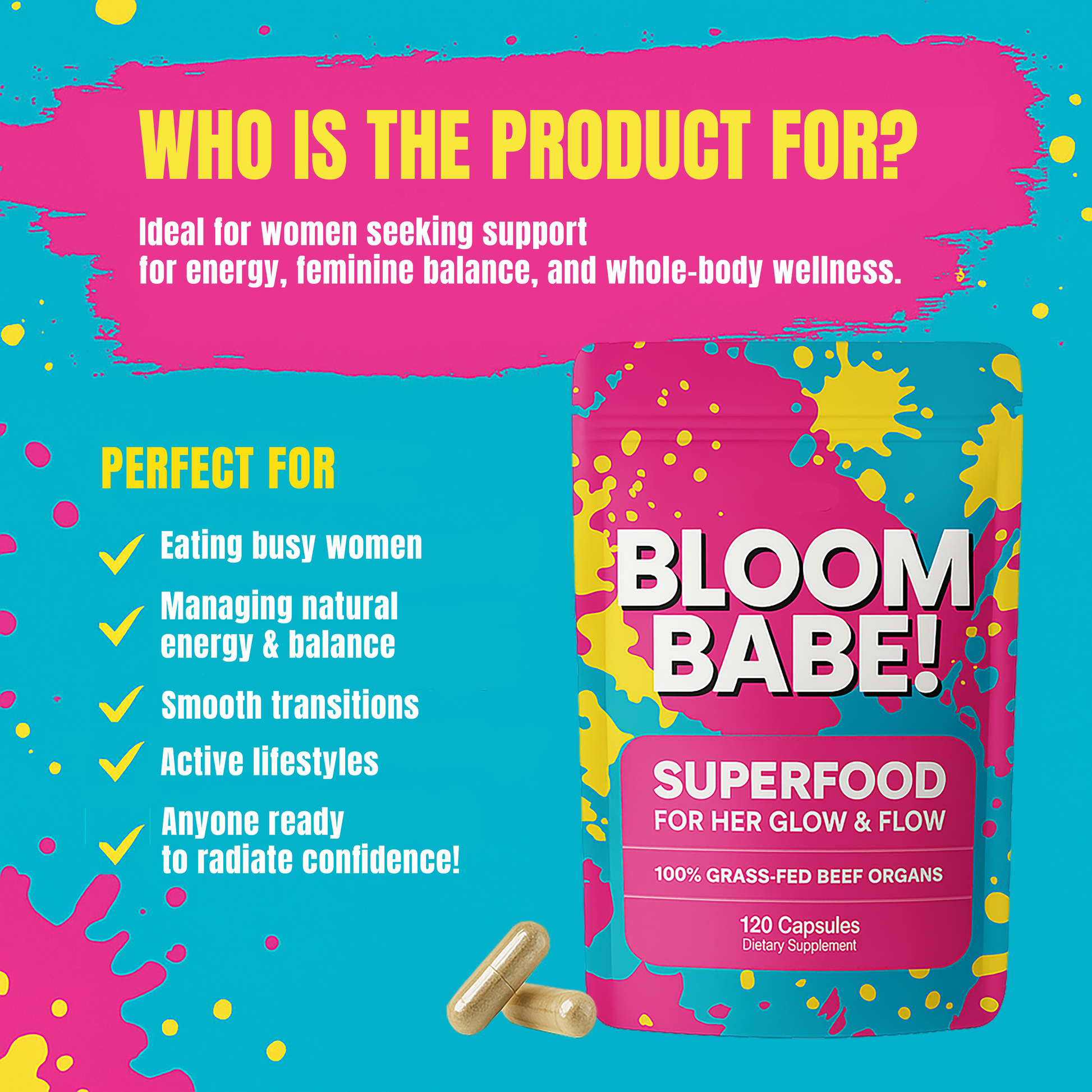 - BLOOM BABE! – Queen of Superfoods – Designed to support hormone balance for women, this primal beef organ supplement provides key nutrients to help maintain energy, vitality & well-being.